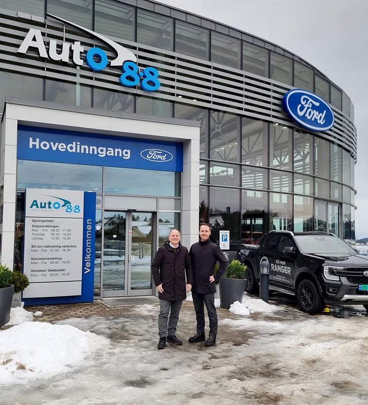 Fra venstre: Terje Sildnes, konsernleder Auto 8-8 og sønnen Thomas Sildnes, forretningsutvikler Auto 8-8
