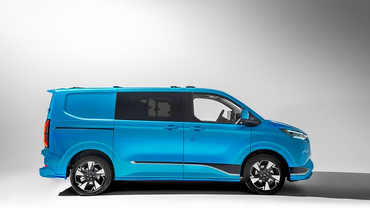 - E-Transit Custom kan fås med ProPower ombord – et unikt system som gjør bilen om til en energikilde der utstyr og verktøy kan brukes med inntil 2,3 kW.
