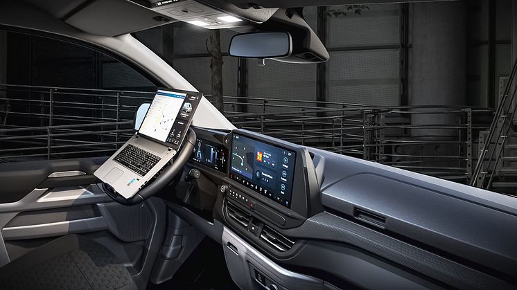 Nye Transit Custom kommer med tilvalget mobilt kontor. Her kan rattet lett foldes ned til et bord som kan brukes til alt fra lunsjbord til skriving på PC. Med leveringsassistenten som er tilgjengelig fra sommeren 2024, kan du spare 20 sekunder pr. stopp på leveringene dine. Transit Custom kommer også med et 5G-modem som standard. Det gjør at bilens mer enn 30 moduler raskt kan oppdateres trådløst uten at du trenger å besøke din Ford-forhandler. Ford Pro sitt Upfit Integration System gir deg også muligheten til sømløst å kunne styre bilens elektriske system - inkludert konverteringer - fra den standard 13-tommers berøringsskjermen i førermiljøet.