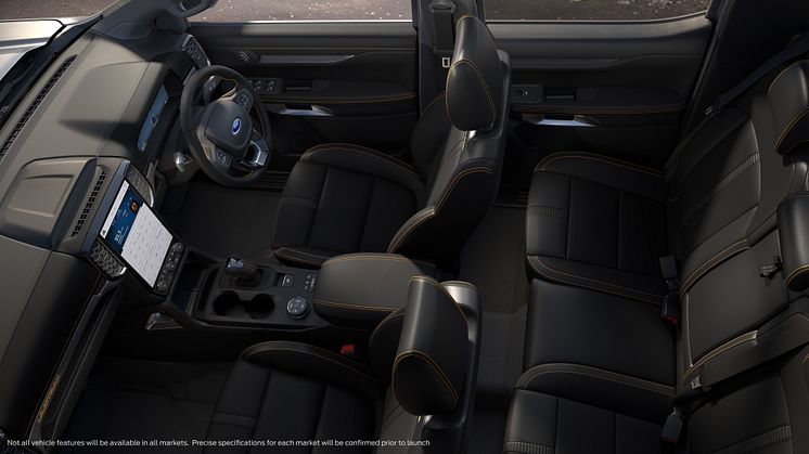 For første gang tilbyr også Ranger matrix LED-frontlykter. Inni kupeen er det benyttet mykt Premium-materiale og en stor brukervennlig touchskjerm er en fremtredende del av interiøret. Denne er utstyrt med Fords siste SYNC 4 infotainmentsystem.
