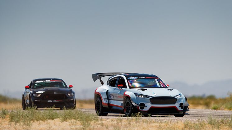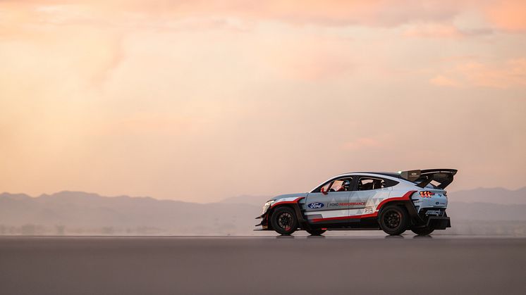 Den ene produserte bilen, Mustang Mach-E 1400, er resultatet av et samarbeid mellom Ford Performance og RTR hvor de til sammen har lagt ned titusener av timer for å vise kunder hva en elektrisk bil faktisk kan oppnå av ytelser og prestasjoner.