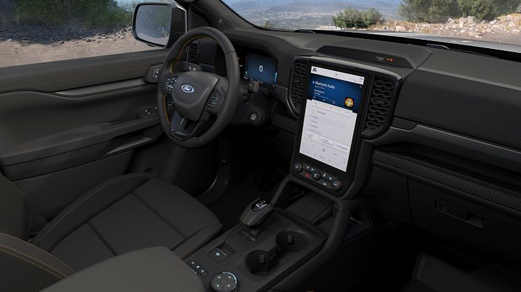 Interiøret i kupeen preges av de unike Miko-semskede setene med eksklusive Wildtrak-inskripsjoner. Dører, senterkonsoll og den øverste delen av dashbordet er kledd med mykt semsket materiale med Cyber Orange kontrastsøm. Wildtrak X kommer også standard med mulighet for tilkobling til FordPass Pro og Ford Pro-tjenester - som Ford Liive - som leverer en enda bedre eieropplevelse.