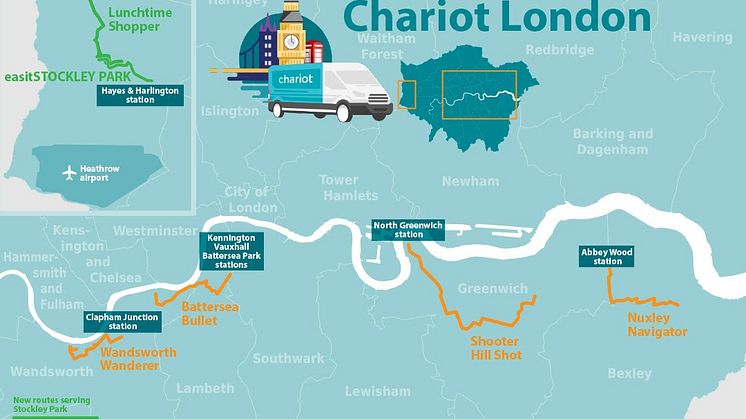 Den første Chariot-ruten er et samarbeid med den prisvinnende og bærekraftige transportgruppen easitNETWORK. Ruten skal gå mellom Stockley Park, like ved Heathrow flyplass, og transportknutepunktet i London, Hayes & Harlington Station.
