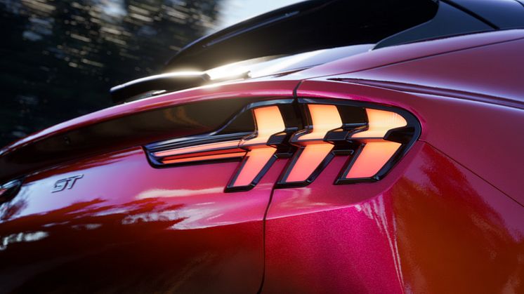 Med de nye tøffe eksteriørfargene Velocity Blue, Molten Magenta og Terrain Sand, har 2025-utgaven av Mustang Mach-E mer personlighet enn noensinne. GT-modellen har også fått en oppdatering ved at grillen har flere svarte detaljer i fronten.