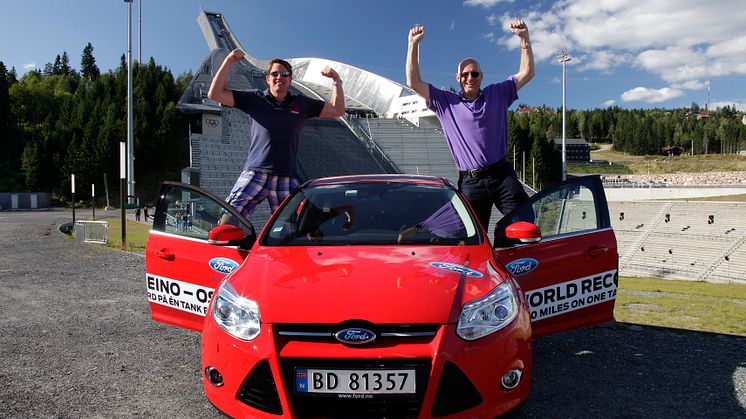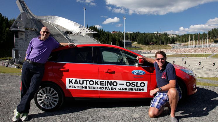 Fredag formiddag forlot de to nordmennene Knut Wilthil og Henrik Borchgrevink Kautokeino i en fulltanket og nypolert rød Ford Focus med den prisbelønte 1-liters EcoBoost-motoren med 125 HK. Dekkene var av typen Continental EcoContact 5, noe som gir minimal rullemotstand.