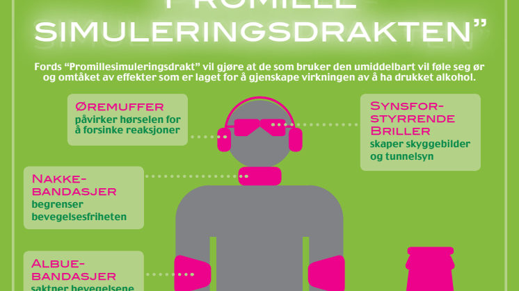 Ford introduserte i fjor i Europa «Kjøreferdigheter for livet», selskapets prisbelønte opplæringsprogram for unge sjåfører, og har nå utviklet en "Promillesimuleringsdrakt" som påvirker syn, koordinering og balanse.