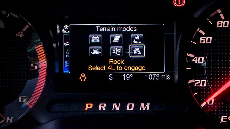 Nye Ranger Raptors «Terrain Management System» gjør at føreren kan velge mellom 6 kjøremoduser som automatisk optimaliserer pickupen for ulike kjøreutfordringer: normal, sport, gress/grus/snø, gjørme/sand eller stein. Også Baja-mode, som er oppkalt etter det berømte Baja Desert Rally. Dette brukes for å få fullt utbytte av alle de fantastiske offroad-prestasjonene til den ekstreme pickupen.